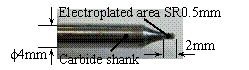 機上で首下を短く成形した超硬軸を台金とし,それにワット浴を用いてダイヤモンド砥粒(#325/400)を電着し,工具として使用した.